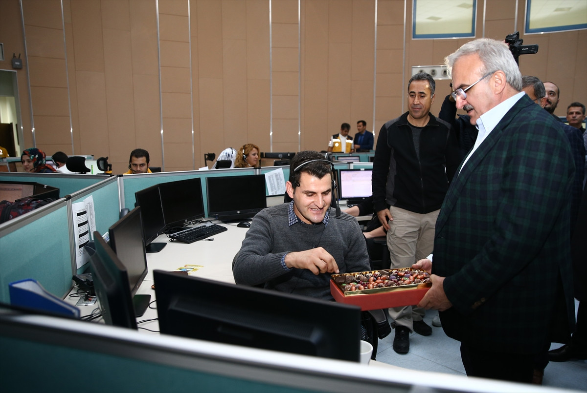 Adından 112 Acil Çağrı Merkezi'ne geçen Karaloğlu, sağlık çalışanlarının yeni yılını kutlayarak, çalışmalar hakkında bilgi aldı, ikramda bulundu.