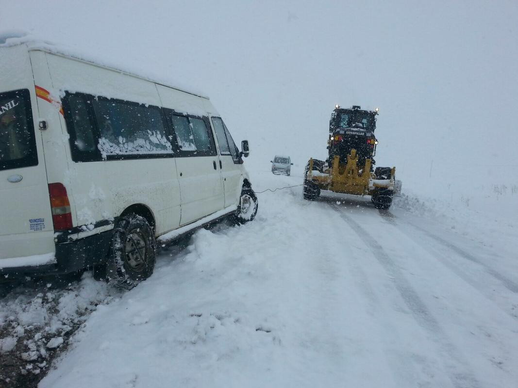 "Kentte, 6 bin kilometre yol ağında çalışma yapılıyor. Gece boyunca yaşanan aşırı yağış, buzlanma ve mahsur kalan araçların kurtarılması için ekipler seferber olurken, kent merkezinde ise ana arterlerde sabaha kadar yüzlerce kişi kar temizleme çalışmasına katıldı. Şimdiye kadar içinde 78 öğrenci ve öğretmenlerin olduğu servisler, 126 köy minibüsü veya sivil binek araç, 30 hasta nakil aracın tahliyesi yapıldı. Yolda kalan araçlar halatlarla çekilirken, ambulansların geçişinin sağlanması için gece boyunca yol açma çalışmaları yapıldı."