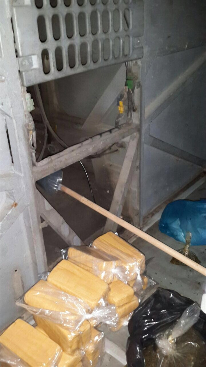 Eğitimli narkotik köpeğinin de yer aldığı aramada aracın bagaj bölümünde gizlenmiş 126 paket içerisinde 65 kilo 593 gram eroin ele geçirildi.