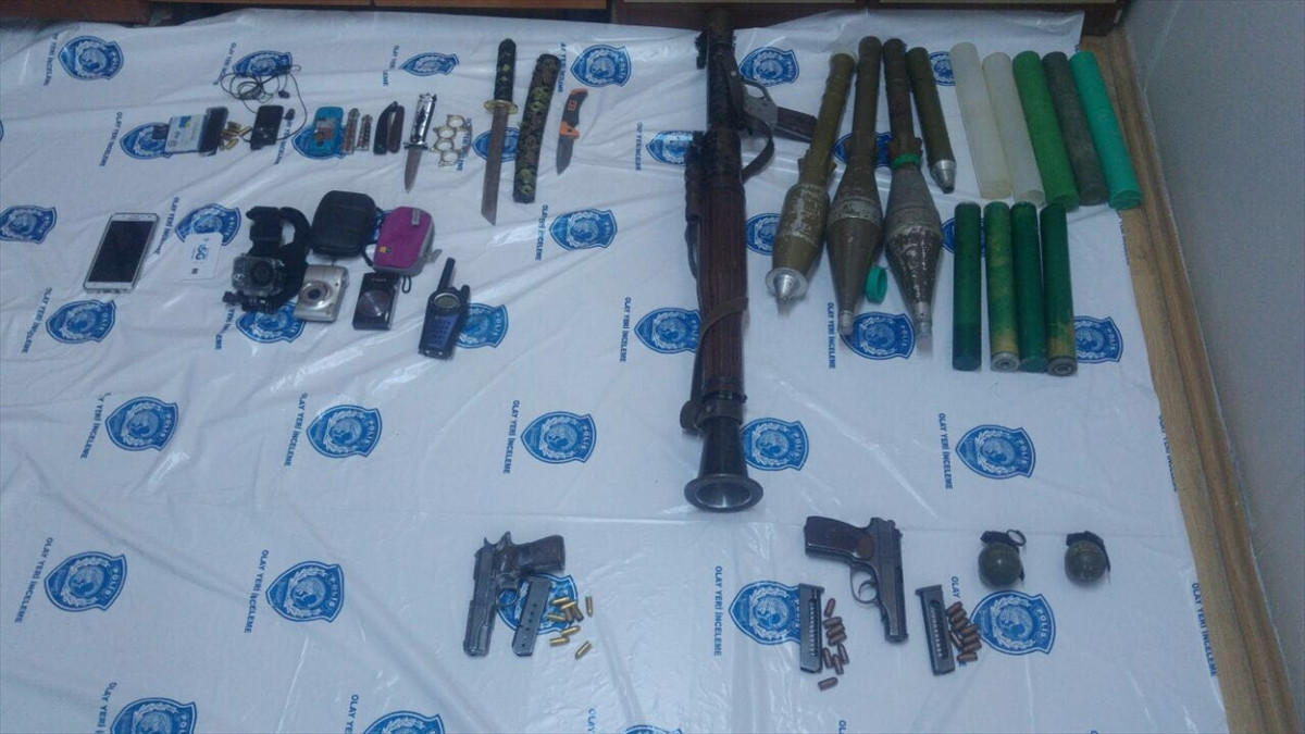 "Çatışmanın yaşandığı ev ve ölü ele geçirilen şahsın üzerinde yapılan aramalarda 2 tabanca, bu tabancaya ait 4 şarjör ve çok sayıda fişek, 2 el bombası, 1 RPG-7 roketatar, 3 roket başlığı, 8 roket sevk fişeği, 1 el telsizi, 1 dürbün, 1 fotoğraf makinesi, 1 cep telefonu, 2 hafıza kartı ve örgütsel doküman ele geçirildi."