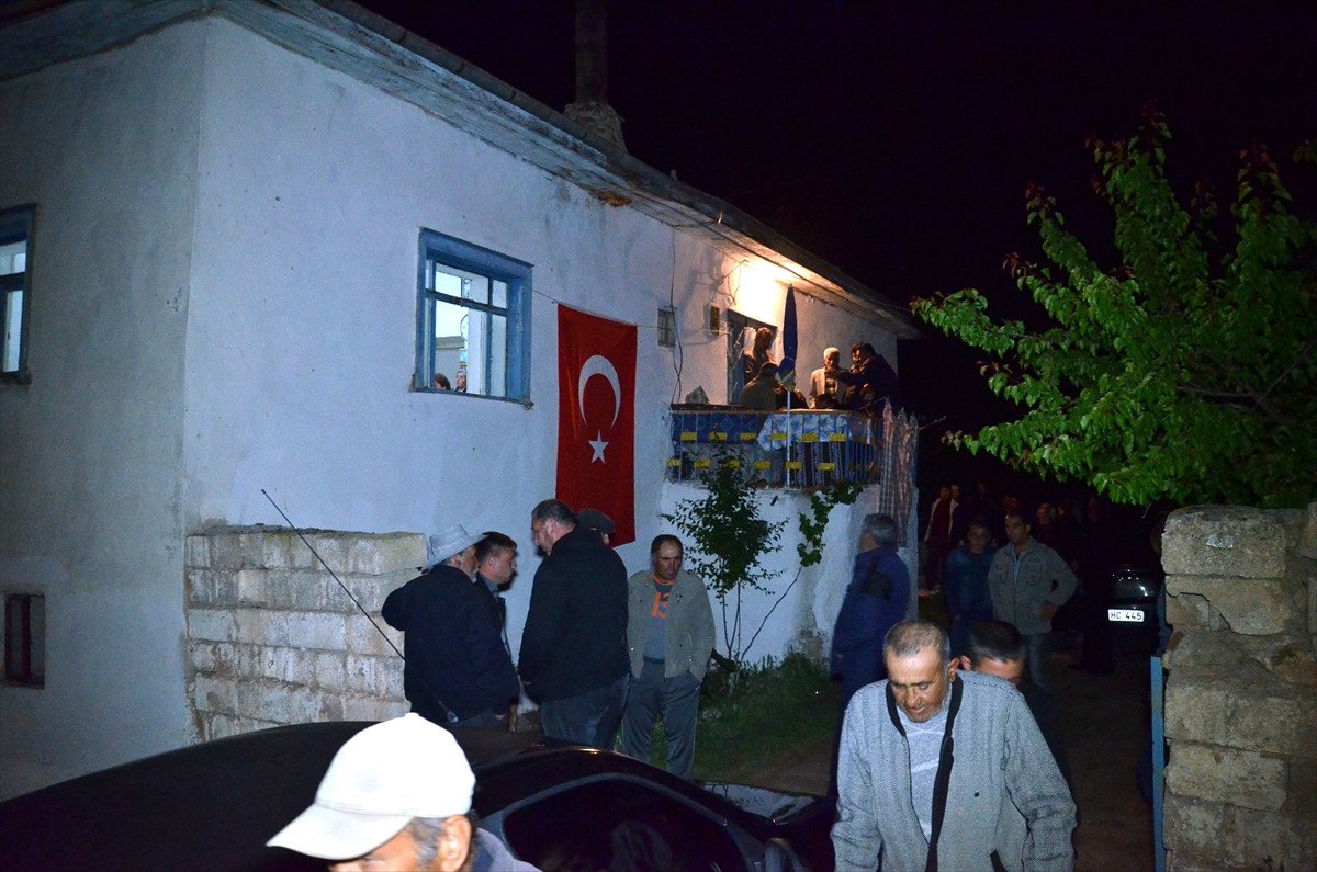 Acı haberin ardından baba ocağına ve çevredeki evlerin balkonlarına Türk bayrakları asıldı.