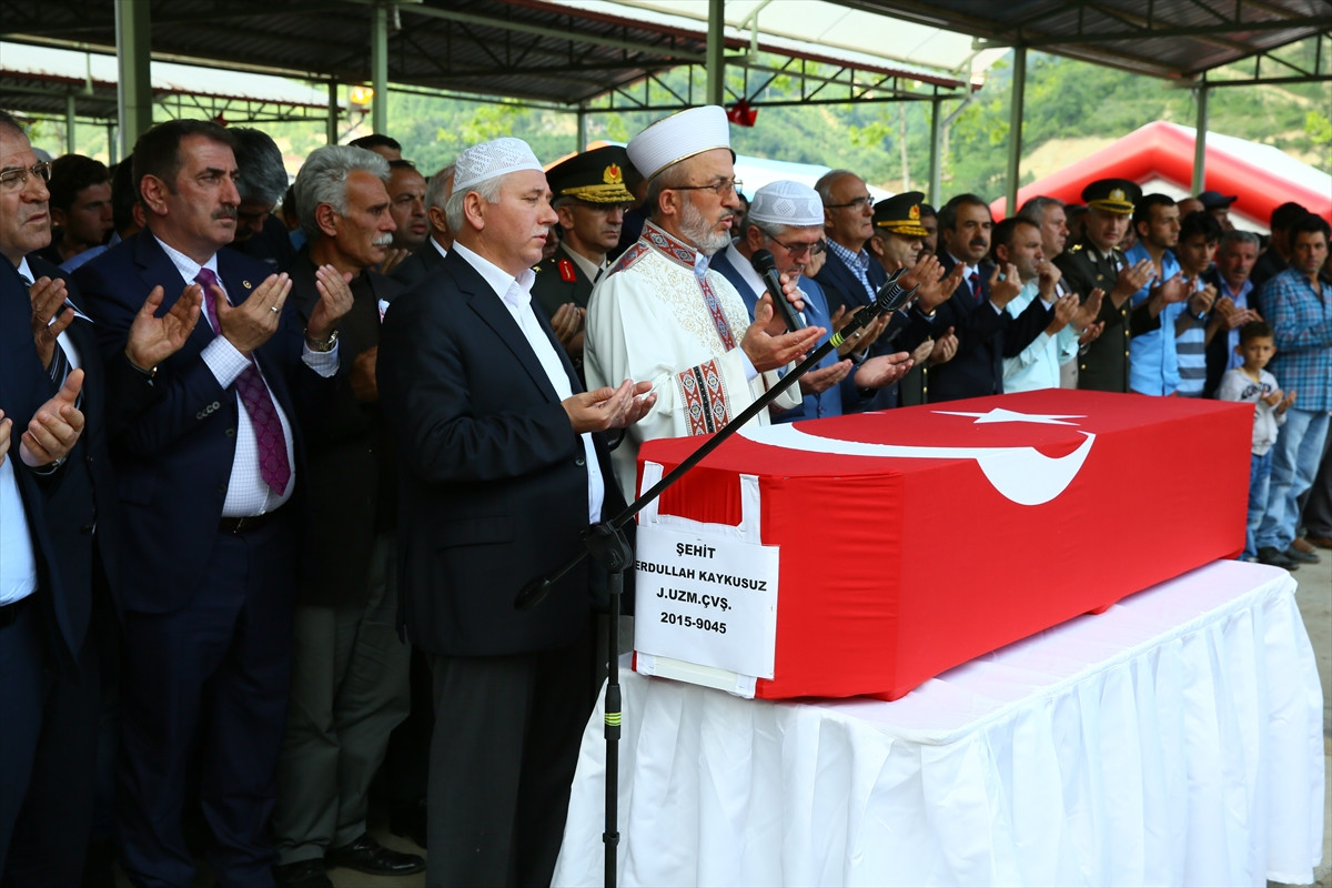 SAMSUN (AA) - Van'ın Çaldıran ilçesinde terör örgütü PKK üyelerinin yola döşediği patlayıcının zırhlı askeri aracın geçişi sırasında infilak ettirilmesi sonucu şehit olan Jandarma Uzman Çavuş Ferdullah Kaykusuz, memleketi Samsun'un Ayvacık ilçesinde toprağa verildi.