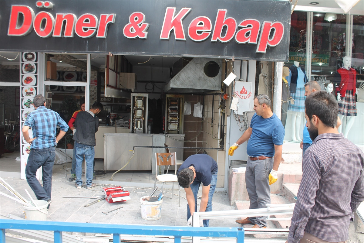 Terör örgütünce AK Parti İl Başkanlığı önündeki polis kontrol noktasına patlayıcı yüklü araçla gerçekleştirilen saldırının ardından vatandaşlar, iş yerlerindeki enkaz yığınlarını temizleyerek onarım çalışması başlattı.