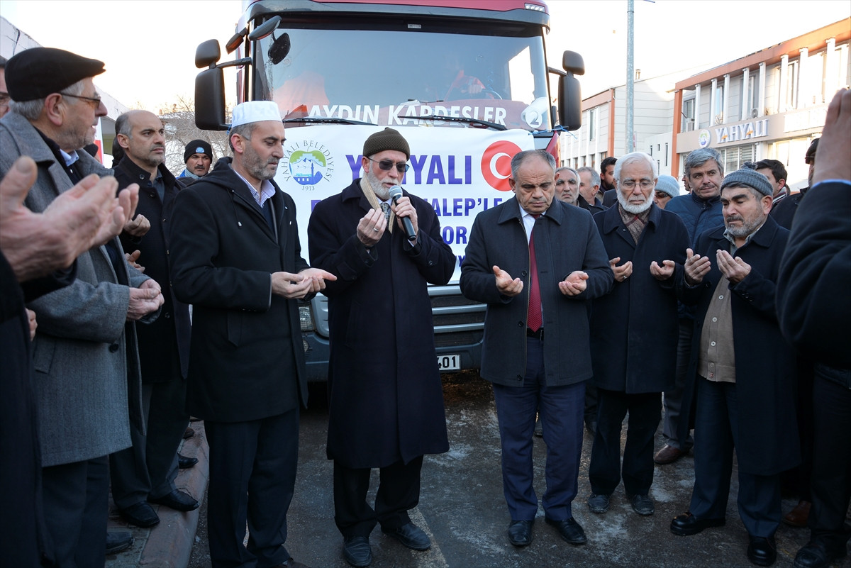 KAYSERİ (AA) - Kayseri'nin Yahyalı ilçesinde düzenlenen "Yahyalı Ekmeğini Halep ile Paylaşıyor" kampanyası kapsamında toplanan yardımların bulunduğu 7'nci tır dualarla uğurlandı.