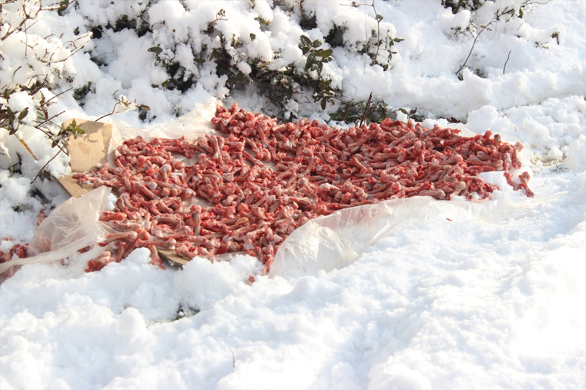 Kar yağışının başlamasıyla Yalova ve çevresinde yaban hayvanları için her hafta 750 kilo sakatat bırakıldığını belirten Alğan, şöyle konuştu: