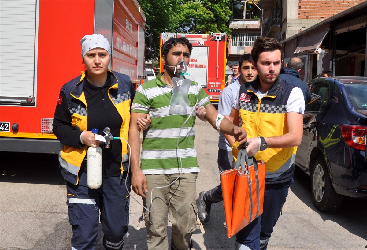 Bursa merkez Osmangazi ilçesi Gülbahçe Mahallesi Arda Sokağı'nda 3 katlı tekstil imalathanesinde henüz belirlenemeyen nedenle yangın çıktı. Binanın 3'üncü katındaki yangın nedeniyle iş yerinde bulunan Suriye uyruklu 7 işçi mahsur kaldı. Yangına müdahale eden itfaiye ekipleri, dumandan etkilenen işçileri araç üstü hidrolik merdivenle binadan tahliye etti. Çevredekiler tarafından su ve ayran verilen işçiler, 112 Acil Servis ekiplerince hastaneye kaldırıldı.