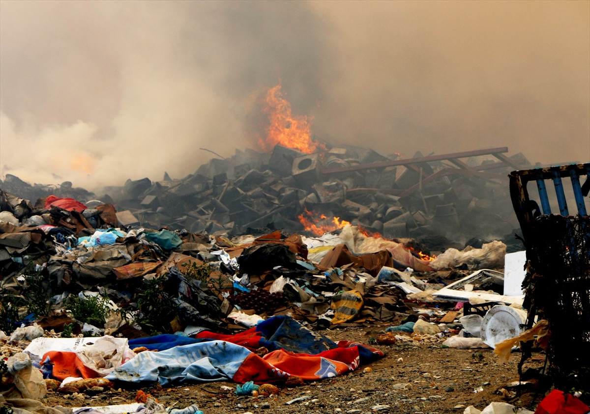 Alınan bilgiye göre, şehir çöplüğündeki yangını görüntülemek için olay yerine giden gazeteciler, alevler arasında kalan 5 yavru köpeği fark etti.