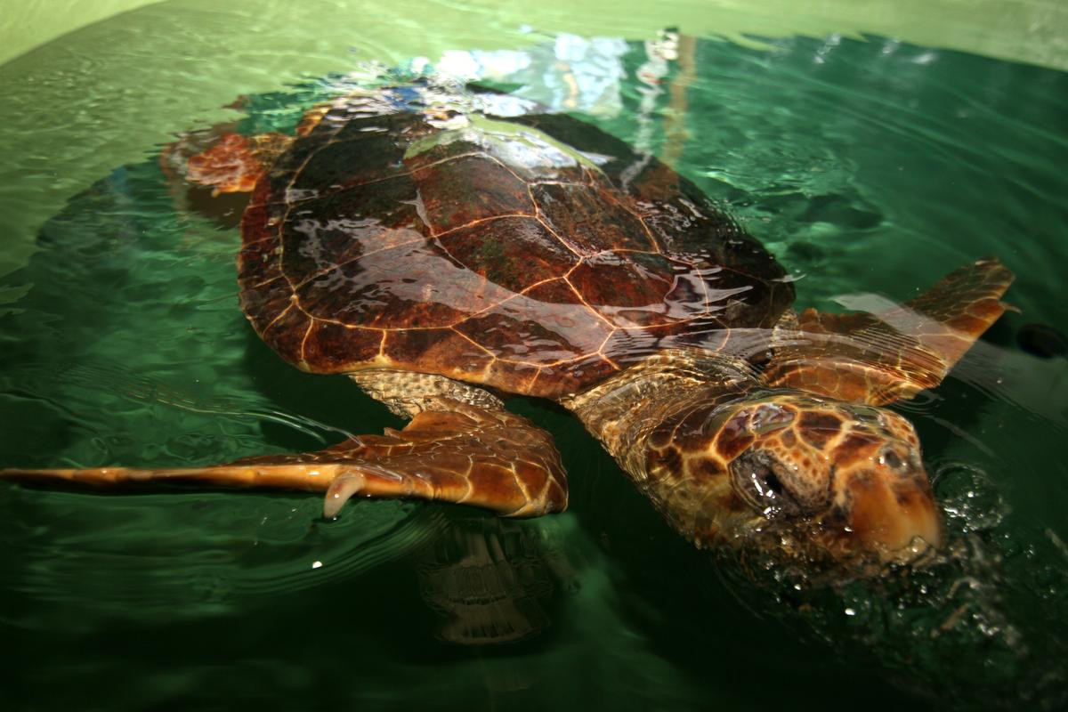 Merkeze gelen yerli ve yabancı turistler, caretta carettalar ve diğer deniz kaplumbağaları hakkında bilgilendiriliyor.