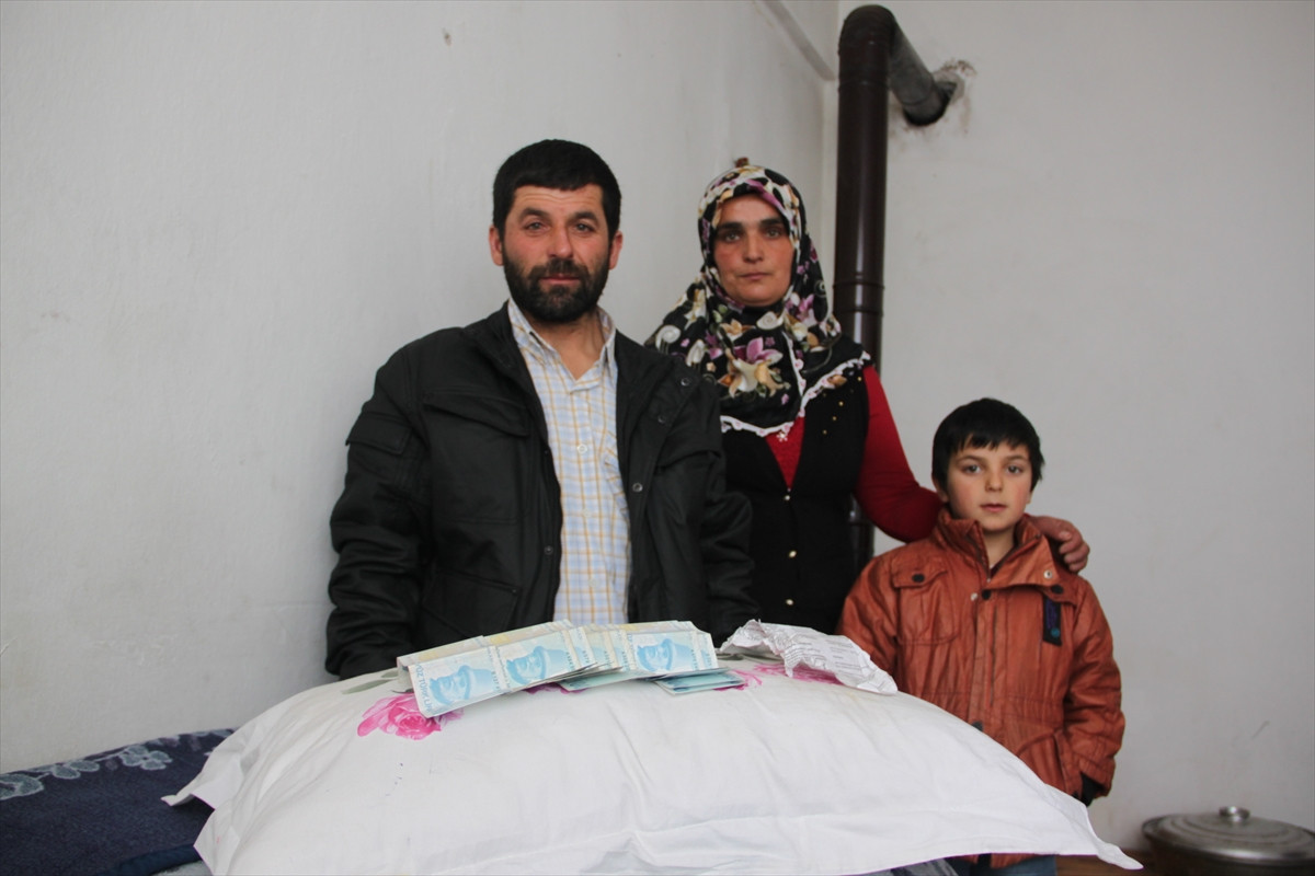 TOKAT (AA) - Tokat'ın Reşadiye ilçesinde evi yanan aileye yardım amacıyla verilen yastıkta bin lira bulundu.