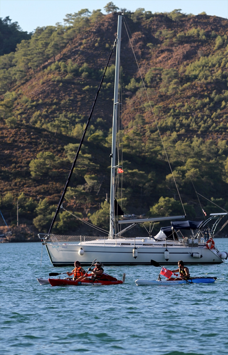 MUĞLA (AA) - Yardıma muhtaç çocuklara destek olmak için 25 gün önce kanoyla Antalya'dan yola çıkan Doğan Eraslan (39) ve Serkan Tarım (44) ile İngiliz Sam Tucker (28), Muğla'nın Fethiye ilçesine ulaştı.