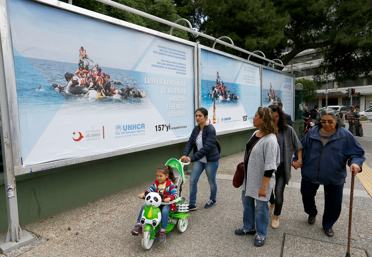 İZMİR (AA) - Göç İdaresi Genel Müdürlüğü ile Birleşmiş Milletler Mülteci Örgütünce, İzmir'in çeşitli noktalarına yasa dışı göçün tehlikelerini anlatan afişler asıldı.