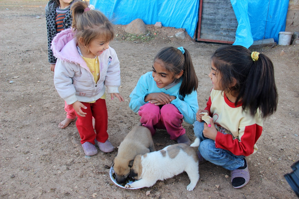 KİLİS (AA) - Kilis'te 3 günlükken sahipsiz kalan yavru köpeklerin bakımını, Suriyeli 6 kız kardeş üstlendi.