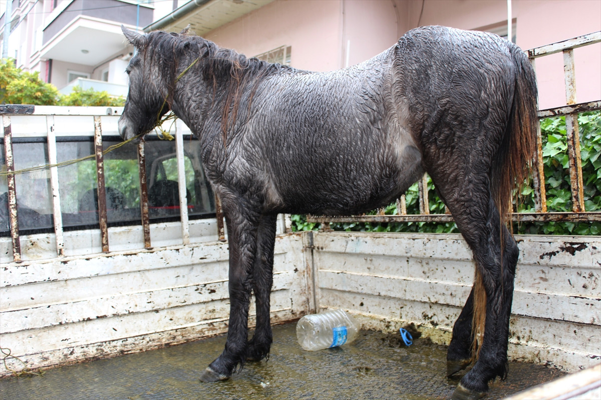 Müdürlük veterinerleri, zayıf düştüğü görülen atın bakımını gerçekleştirdi.