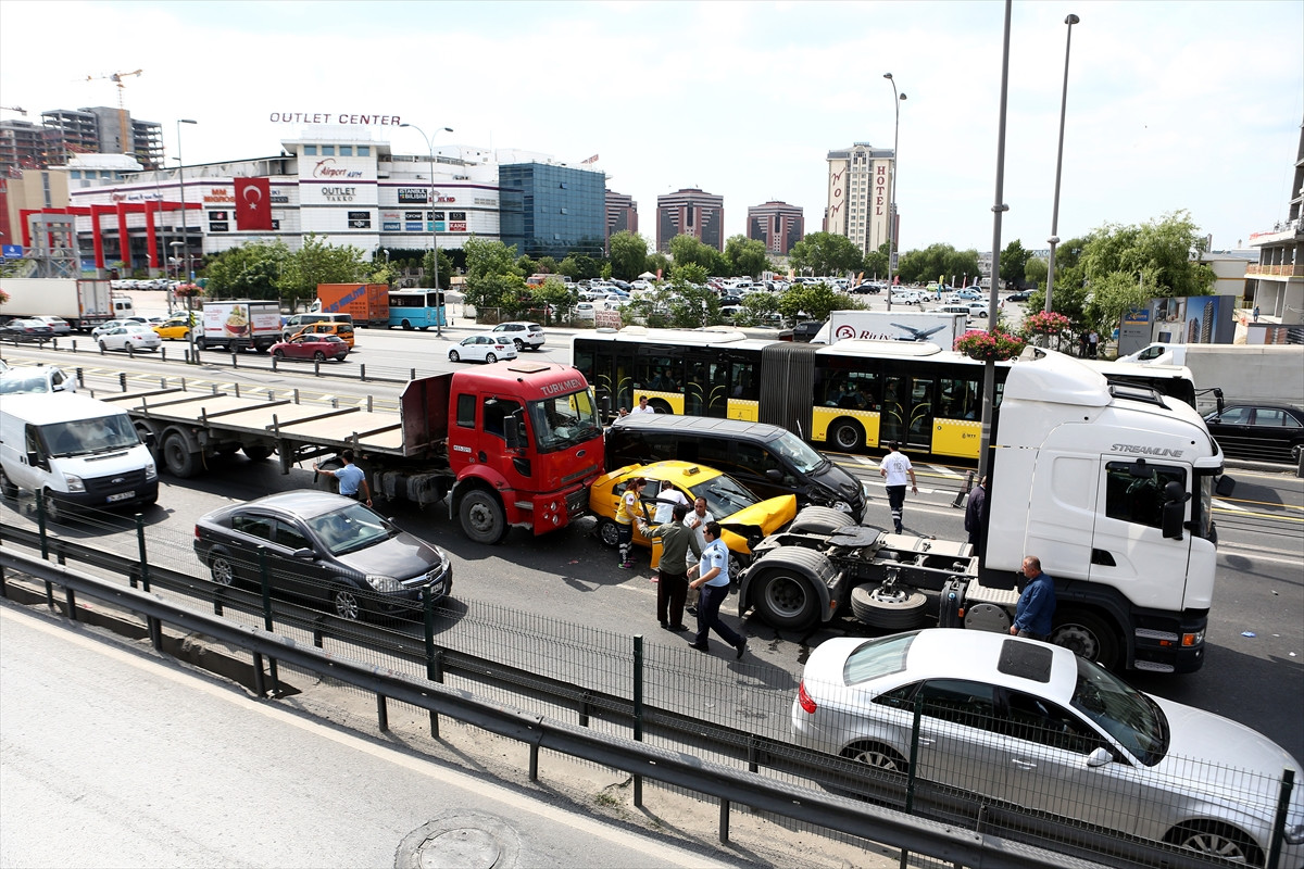 Yenibosna'da meydana gelen zincirleme trafik kazasında 4 kişi yaralandı. E-5 Karayolu Avcılar istikametinde seyir halindeki otomobilin aniden durması sonucu arkadan gelen bir tır otomobile çarparken, tırın arkasındaki 34 TJP 47 plakalı taksi de tıra çarptı. O sırada kazadan kaçmak isteyen ikinci bir tır ise turist taşıyan 34 EM 6967 plakalı servis minibüsüne, ardından da önündeki taksiye çarptı. 4 aracın karıştığı kazada 4 kişi yaralandı. Yaralılar, 112 Acil Servis ekiplerinin olay yerindeki müdahalesinin ardından hastaneye kaldırıldı. Kazada 2 şerit trafiğe kapanırken trafik bir süre tek şeritten sağlandı. Kaza yapan araçların kaldırılması ve belediye ekiplerince yolda yapılan temizlik çalışmalarının ardından E-5 Karayolu Avcılar istikametinde trafik normale döndü.