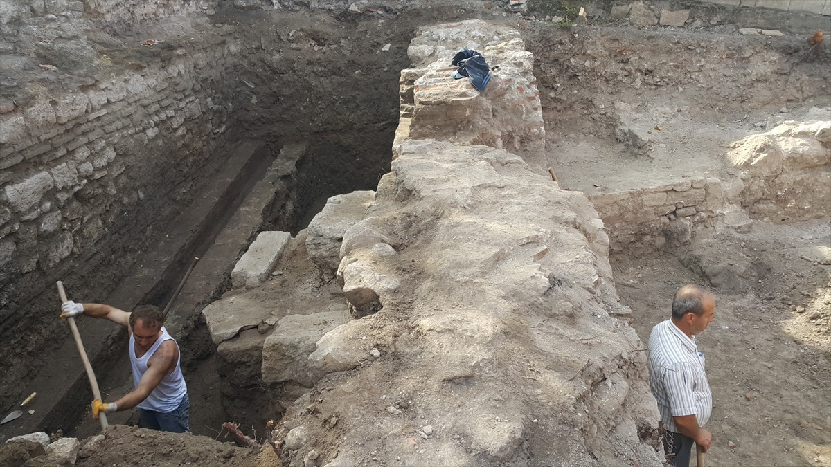 BOLU (AA) - Bolu'da, 2 katlı bir binanın yıkımı sırasında, Roma ve Bizans dönemine ait olduğu belirlenen duvar kalıntıları, su kanalı ve blok taşlar bulundu.