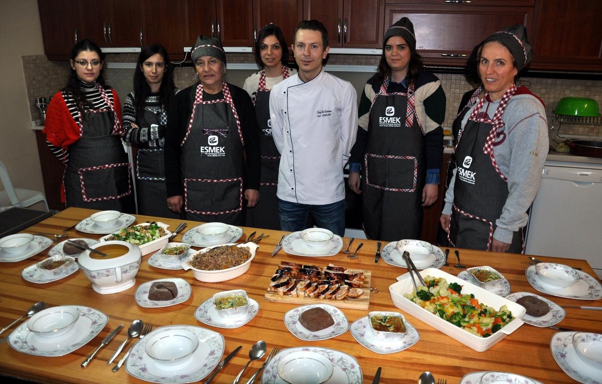Sultandere Eğitim Merkezi'nde gerçekleştirilen ve şef Onur Karaçam tarafından verilen kursa 12 kadın katılıyor.
