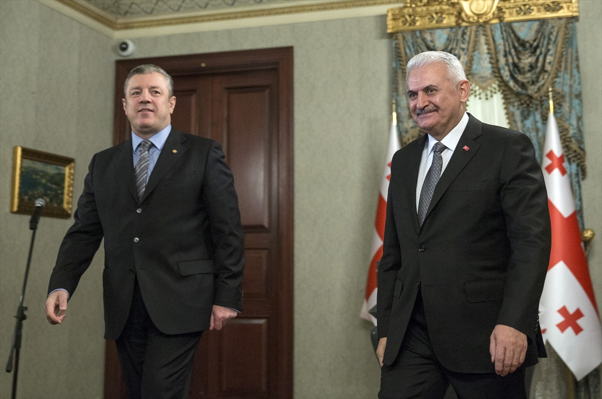Başbakan Binali Yıldırım ve Giorgi Kvirikaşvili, Başbakanlık Dolmabahçe Ofisi'ndeki görüşmelerinin ardından ortak basın toplantısı düzenledi.