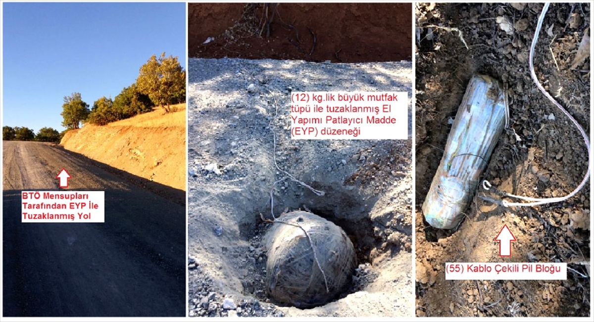 "Bu kapsamda yürütülen mayın ve el yapımı patlayıcı araması esnasında Kulp ilçesinin Şafurnut mevkisinde bulunan stabilize yol kenarına yaklaşık 55 metre kablo çekilerek, 12 kilogram büyük mutfak tüpüyle tuzaklanan el yapımı patlayıcı düzeneği bulunmuştur. Tespit edilen patlayıcı uzman ekipler tarafından patlatılarak imha edilmiştir."