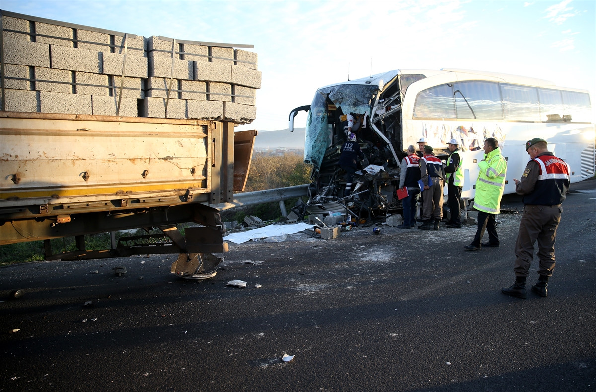 DÜZCE (AA) - Düzce'de yolcu otobüsünün tıra çarpması sonucu 1 kişi öldü, 10 kişi yaralandı.