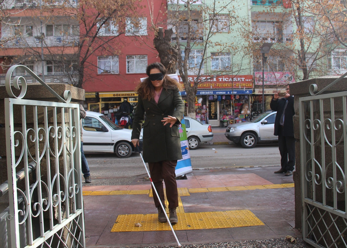 ÇANKIRI (AA) - Çankırı Milli Eğitim Müdürlüğü Rehberlik Araştırma Merkezi (RAM) Müdürlüğü tarafından gerçekleştirilen "Bir Adım Farkındalık" etkinliği kapsamında yoldan geçen vatandaşlar, 1 dakikalığına görme ve bedensel engelli oldu.