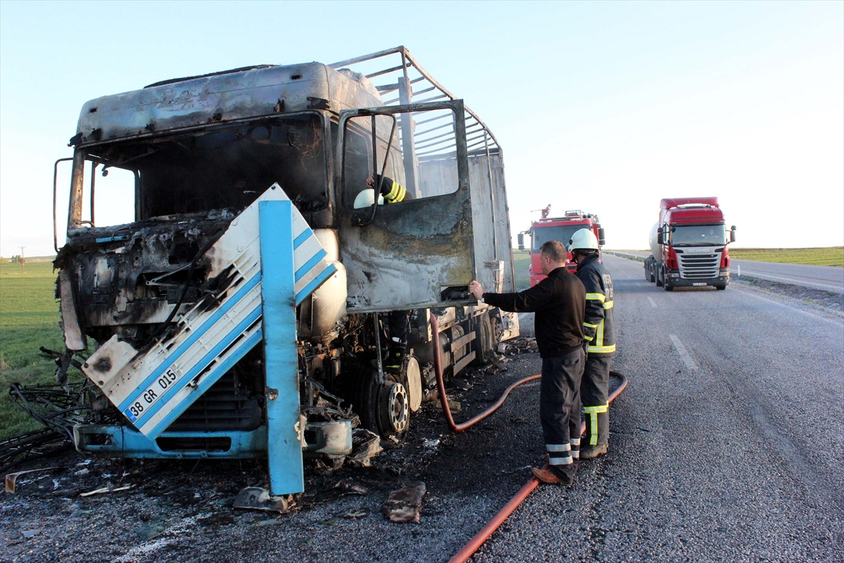 Alınan bilgiye göre Kayseri'den Samsun'a kanepe götüren Eyüp Şahiner idaresindeki 38 GR 015 plakalı tır, Yozgat-Çorum karayolunun 20. kilometresine henüz bilinmeyen bir nedenle alev aldı.