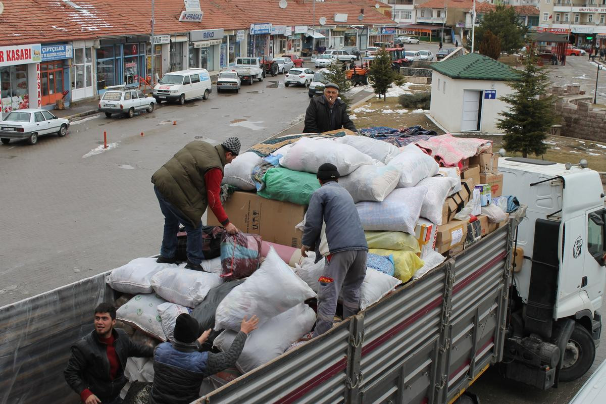 YOZGAT (AA) - Saraykent ilçesinde Bayırbucak Türkmenleri için düzenlenen yardım kampanyasında toplanan giyecek ve gıda malzemelerinin yüklendiği tır, törenle uğurlandı.