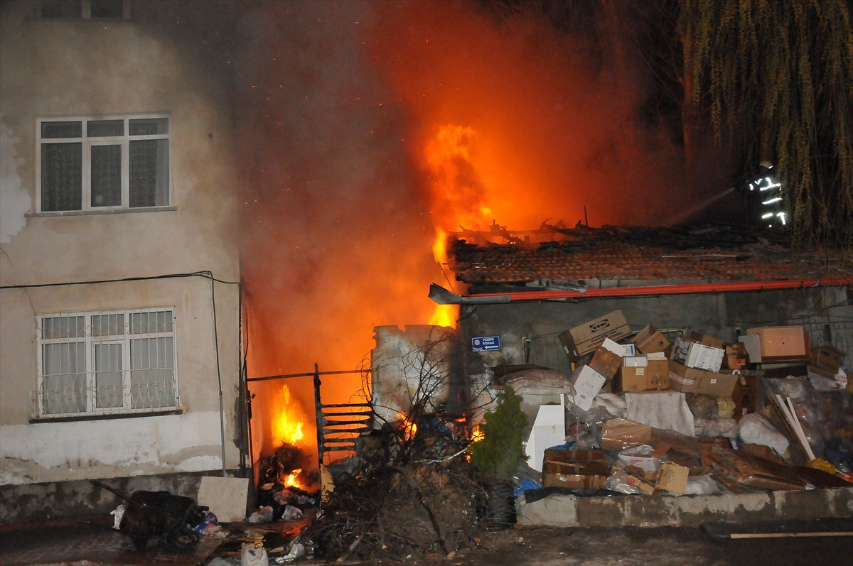 Alınan bilgiye göre, Aşağınohutlu Mahallesi Hüzni Sokak'ta Meliha Özer ve oğlu Orhan Özer'in yaşadığı evde akşam saatlerinde henüz bilinmeyen nedenle yangın çıktı. Evde depolanan hurda kağıt ve plastik malzemelerin tutuşmasıyla yangın kısa sürede büyüdü.
