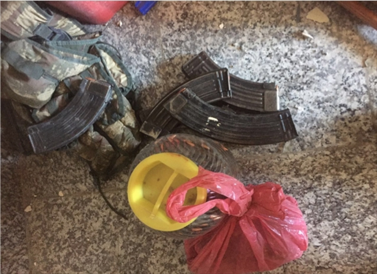 Güvenlik güçleri, çatışmaların ardından teröristlerden temizlenen evlerde, çok sayıda silah ve mühimmat buldu. Örgüt mensuplarının üs olarak kullandıkları evlerde bulunan el yapımı patlayıcı, roketatar ve el bombaları dikkati çekti.