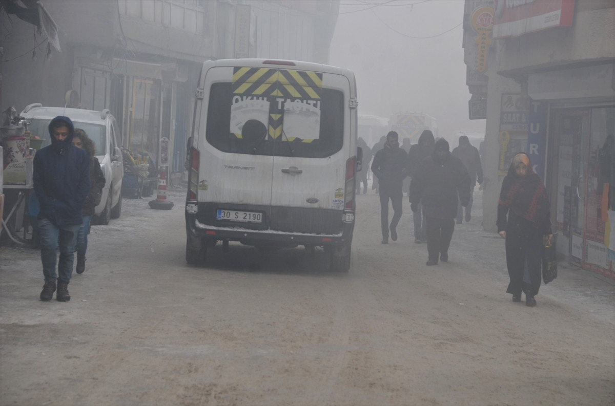 Hava sıcaklığının gece saatlerinde sıfırın altında 20 dereceye kadar ölçülen ilçede, yoğun sis sonucu görüş mesafesi yer yer 5-10 metreye düştü.