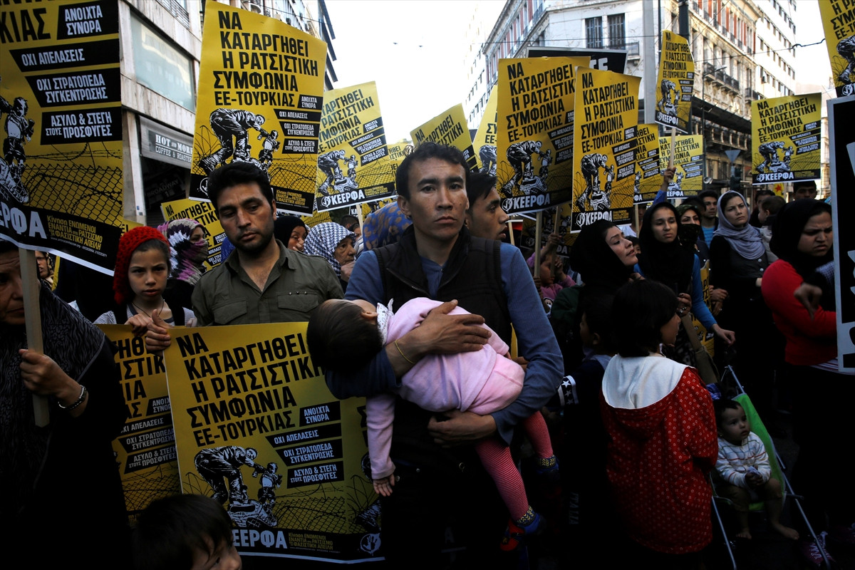 ATİNA (AA) - Atina'da binlerce kişi, Avrupa'nın göçmenlere yönelik politikalarını protesto, göçmenlere destek için yürüyüş yaptı.
