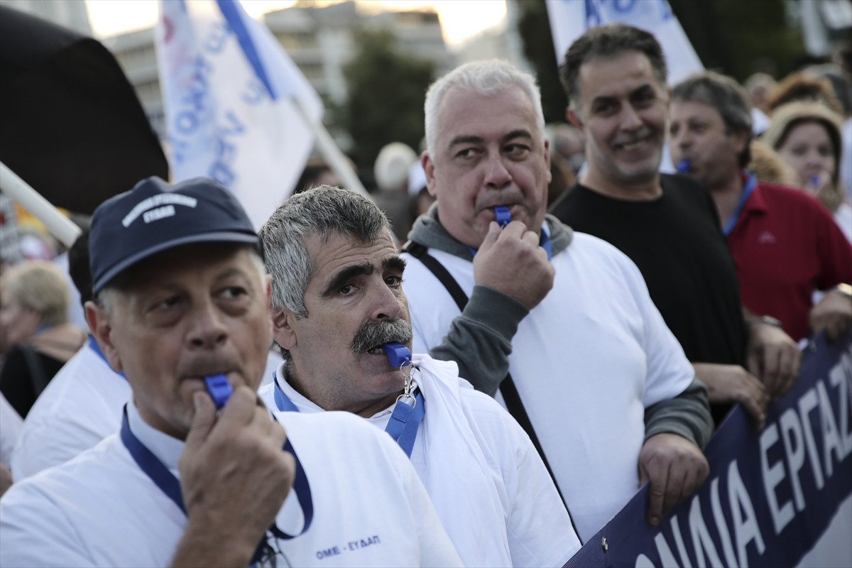 Yüzlerce gösterici, Kamu Çalışanları Federasyonu'nun (ADEDY) çağrısıyla Sintagma Meydanı'na gelerek meclis önünde toplandı.