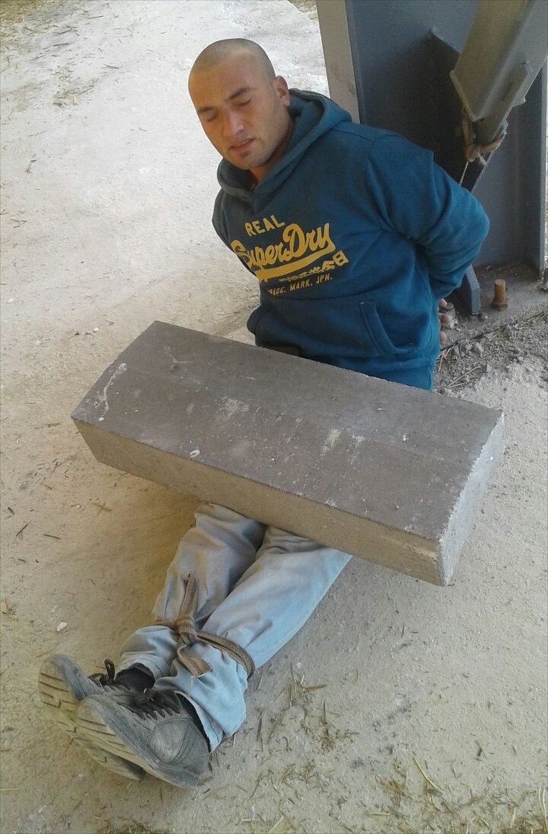 Bunun üzerine mandıraya giden iş yeri sahibi, jandarmaya haber verdi. Bölgede araştırma yapan Ilgaz İlçe jandarma Komutanlığı ekipleri, elleri ve ayakları bağlandıktan sonra dizlerinin üzerine taş konulan R.E'nin ifadesine başvurdu.