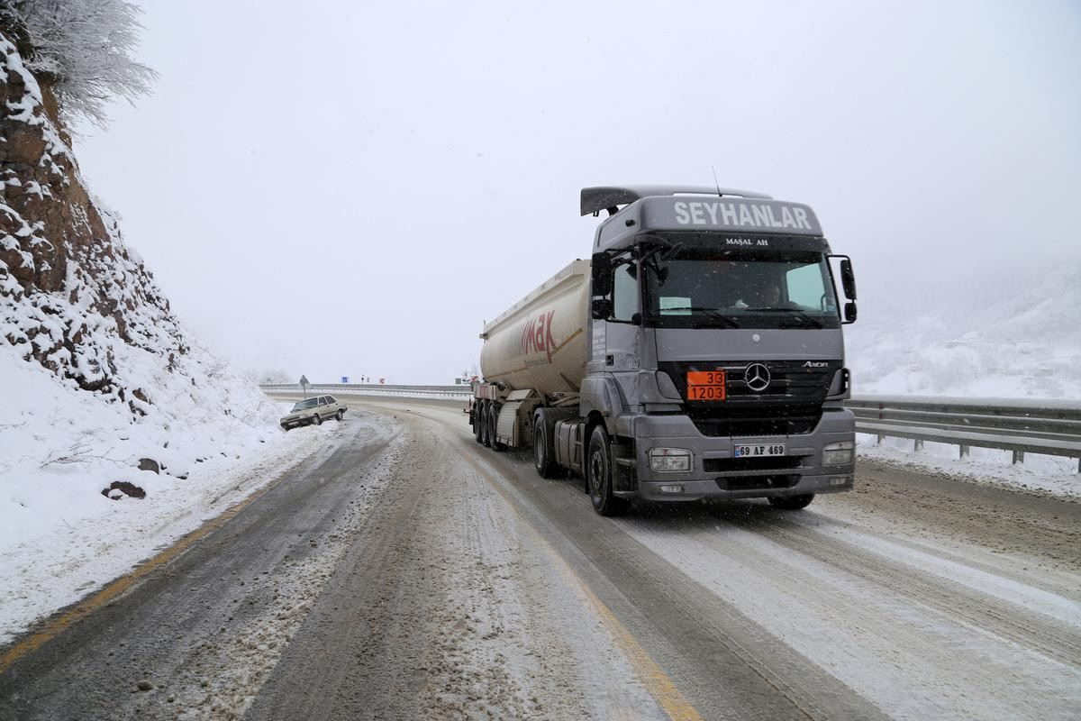 Trabzon-Gümüşhane karayolunun Zigana Dağı kesiminde yoldaki kar ve buzlanma yüzünden kayan bazı araçlar, yol kenarındaki kanallara düşerek ya da ters dönerek zarar gördü.