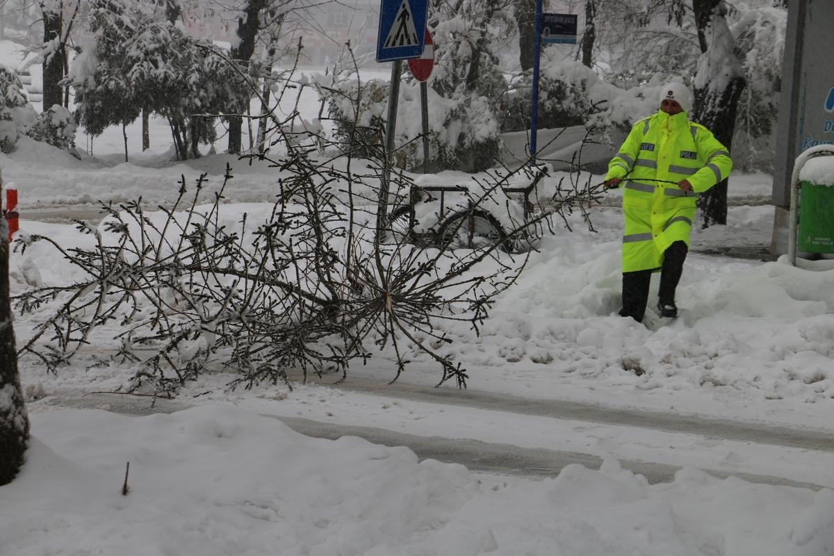 Hükümet Caddesi'nde kara saplanan araçlar, polis ekiplerinin çabalarıyla kurtarıldı. Yine aynı caddede refüjdeki ağaçlardan birinden kırılarak yolu kapatan büyük dal parçası, ekiplerce kaldırıldı.