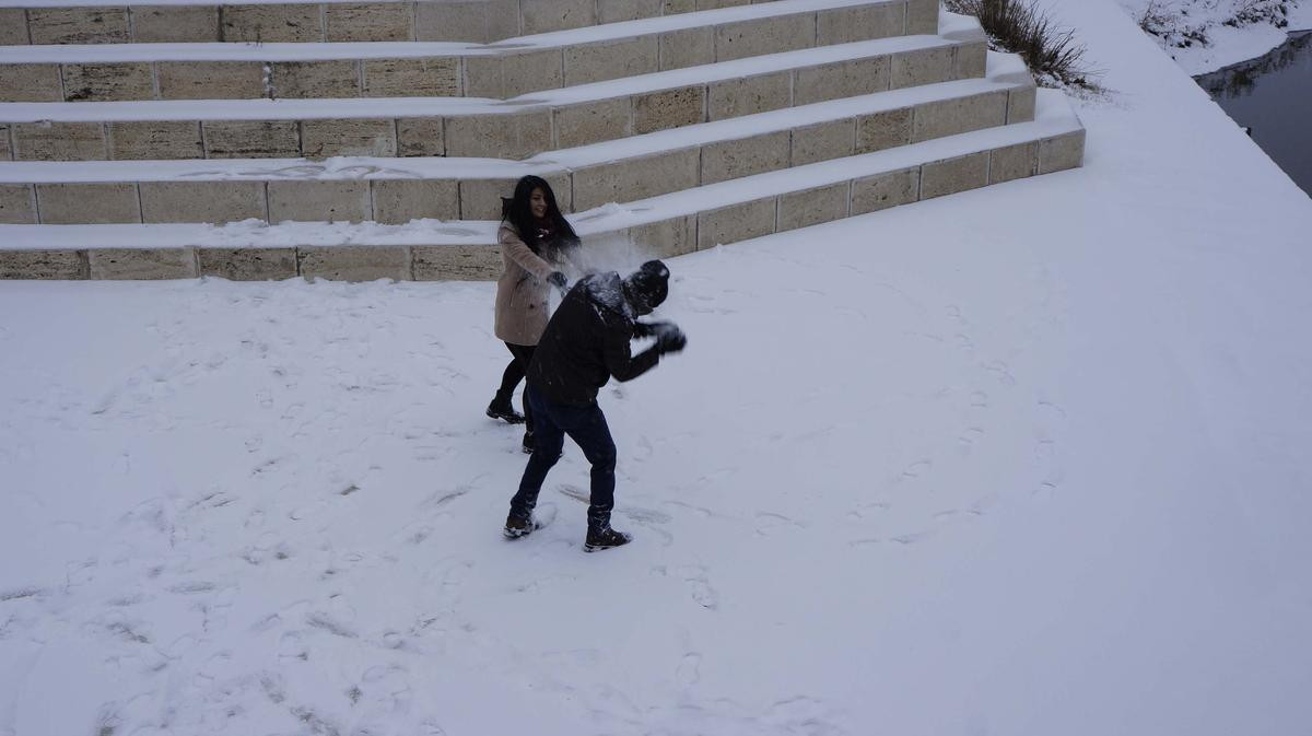 Çocuklar ise hafta sonu tatili dolayısıyla kar topu oynayıp sokak aralarında kayarak karın tadını çıkarıyor.