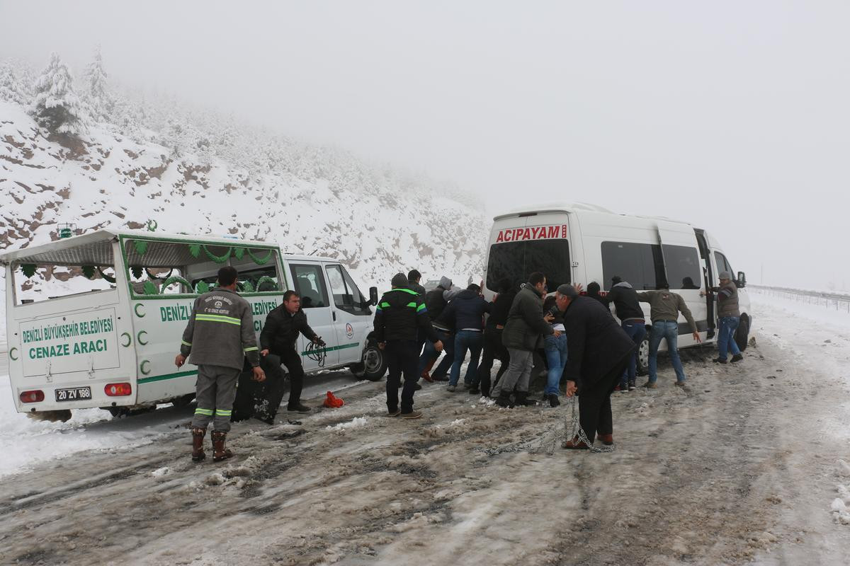 DENİZLİ (AA) - Kar yağışı ve buzlanma nedeniyle Denizli-Antalya karayolunda ulaşım kontrollü sağlanıyor.