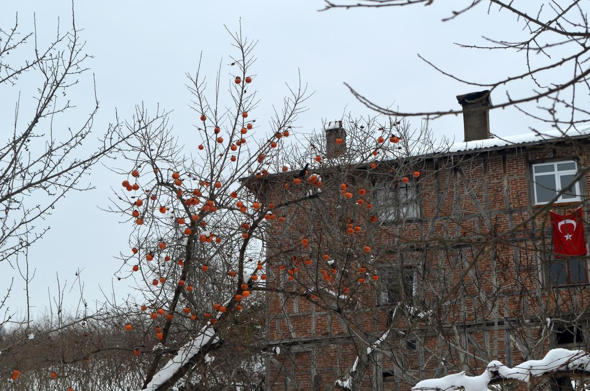 Düzce’nin Akçakoca ilçesinin Çayağzı köyünde yaşayan Ayşe Şen (77) de bahçesindeki ağaçta yetişen meyveleri soğukta yem bulmakta zorlanan kuşlara bıraktı.