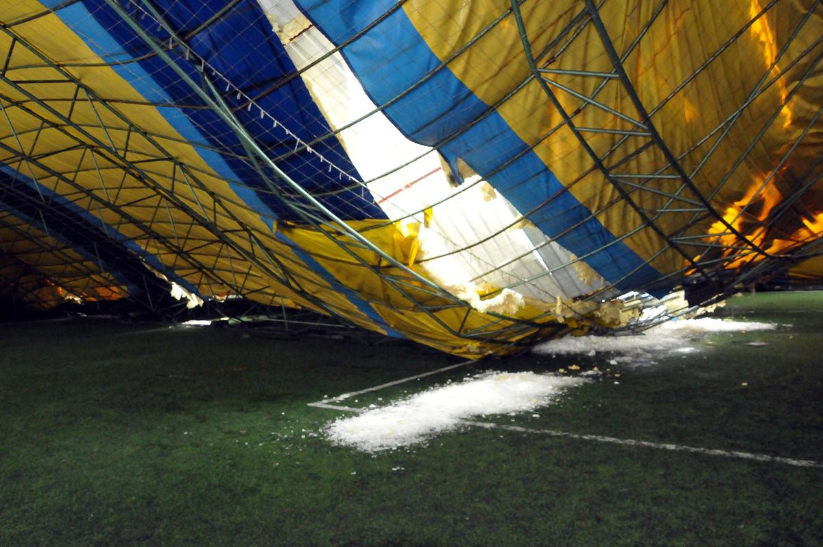 Bilal Şahin Mahallesi'nde üzerinde kar biriken bir halı sahanın çatısı çöktü. Olayda herhangi bir can kaybı ya da yaralanma olmazken halı saha kullanılamaz hale geldi.