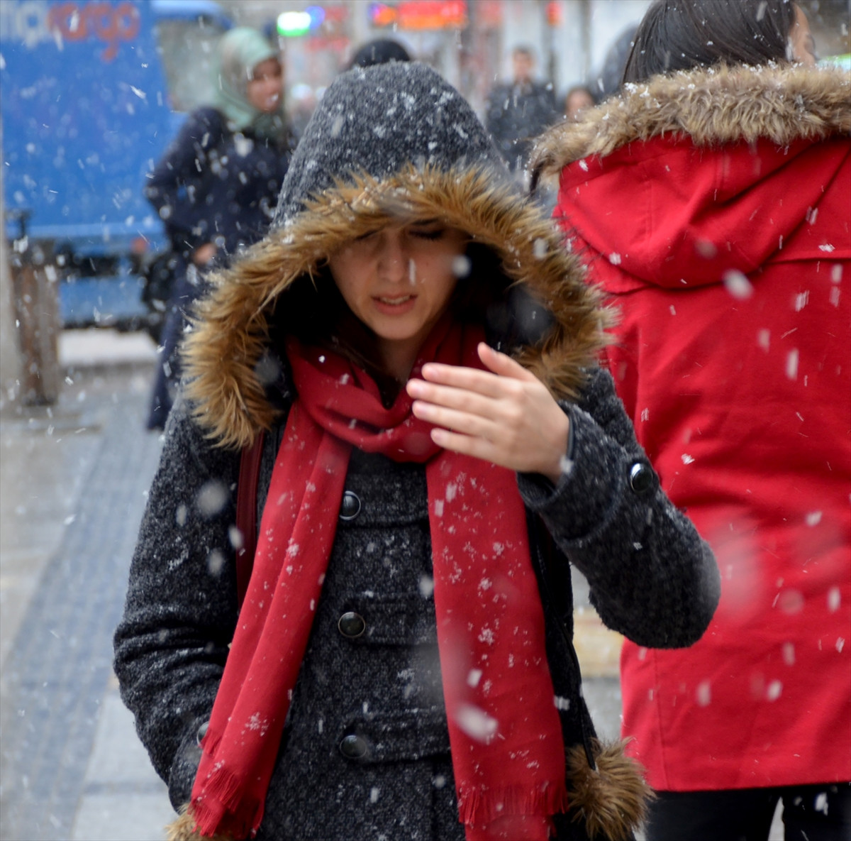 Kent merkezinde sabah saatlerinde başlayan ve yer yer etkili olan kar, yayalara zor anlar yaşatırken sürücüler de trafikte güçlükle ilerledi.