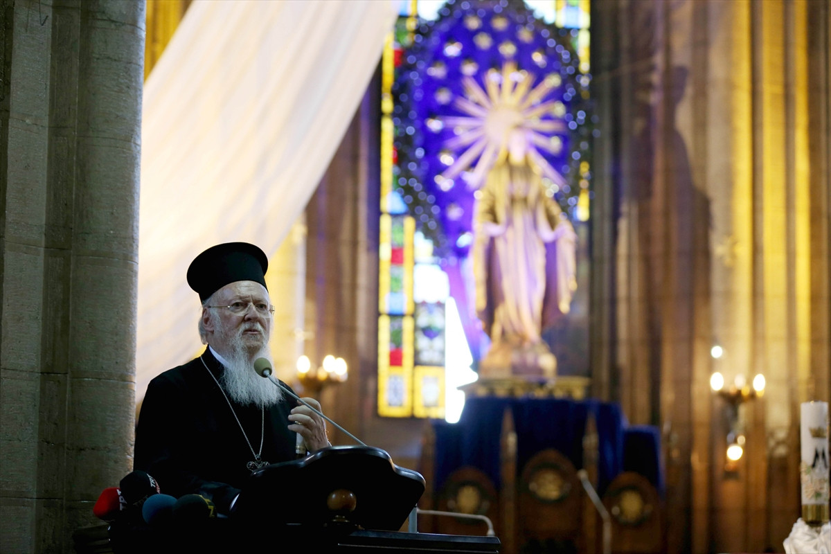 Fener Rum Patriği Bartholomeos ise dışarıda sergilenen fotoğrafları gördükten sonra daha önceden bir konuşma metni hazırlamasına gerek olmadığını anladığını belirtti.