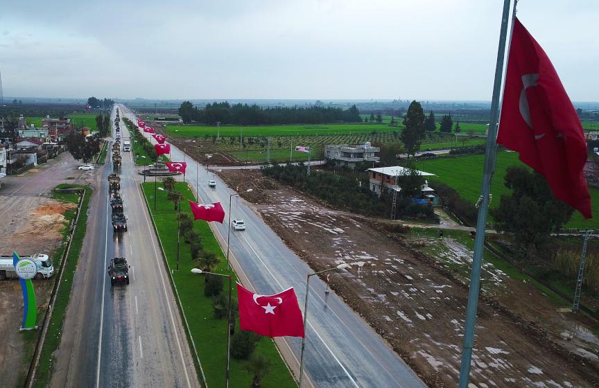 Zeytin Dalı Harekatı kapsamında farklı birliklerden gönderilen çok sayıda zırhlı araçtan oluşan konvoy, Hassa ilçesine ulaştı.