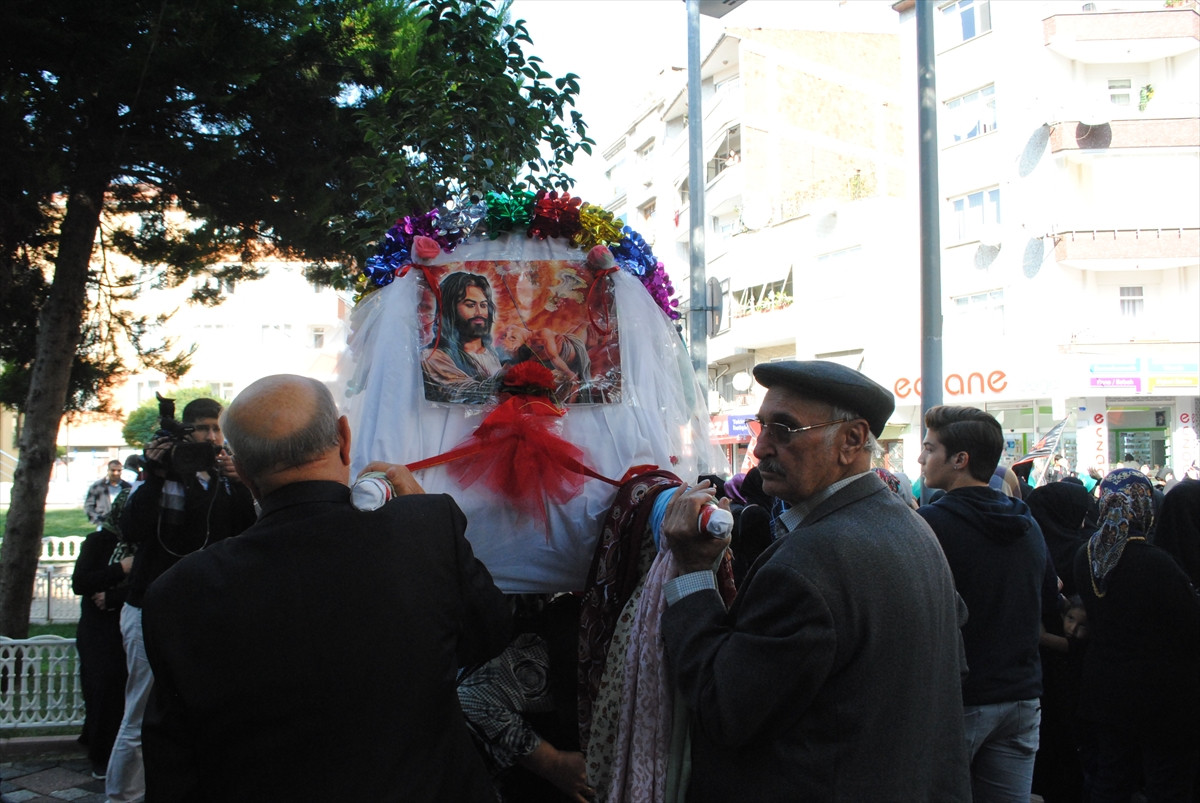 Sümer Mahallesi'ndeki İmam-ı Cafer-i Sadık Camisi önünde düzenlen programda Kerbela acısını anlatan ilahiler eşliğinde kısa bir yürüyüş yapıldı.