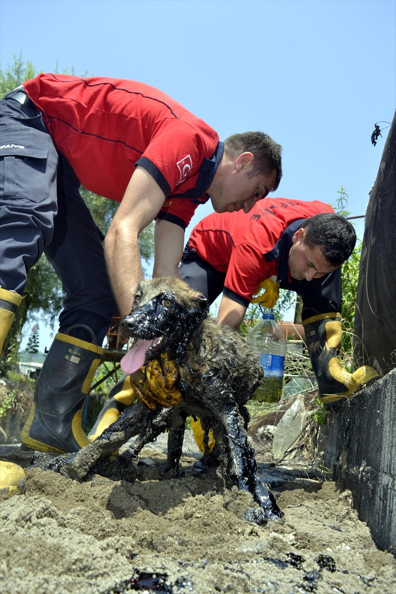 Bölgeye giden itfaiye ekibi, bastığı ziftten kurtulamayan köpeği yapıştığı yerden çıkartmak için büyük çaba sarf etti. Hayvanın zarar görmemesi için özenle çalışan ekipler, zifti yaklaşık 3 saatte kazıyarak yavru köpeği kurtardı.