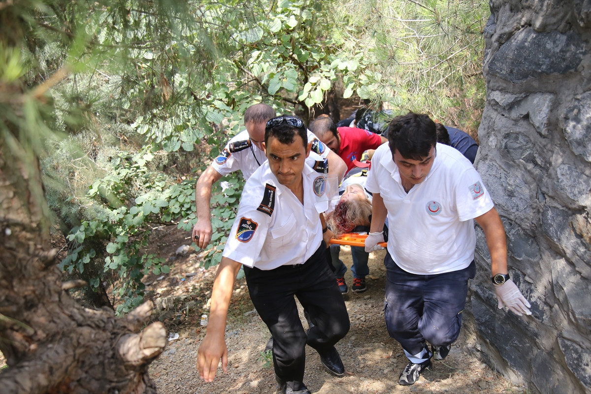 Ekipler, ters dönmüş aracın içinde sıkışan Tülin G'yi büyük uğraşlar sonucu çıkardı.