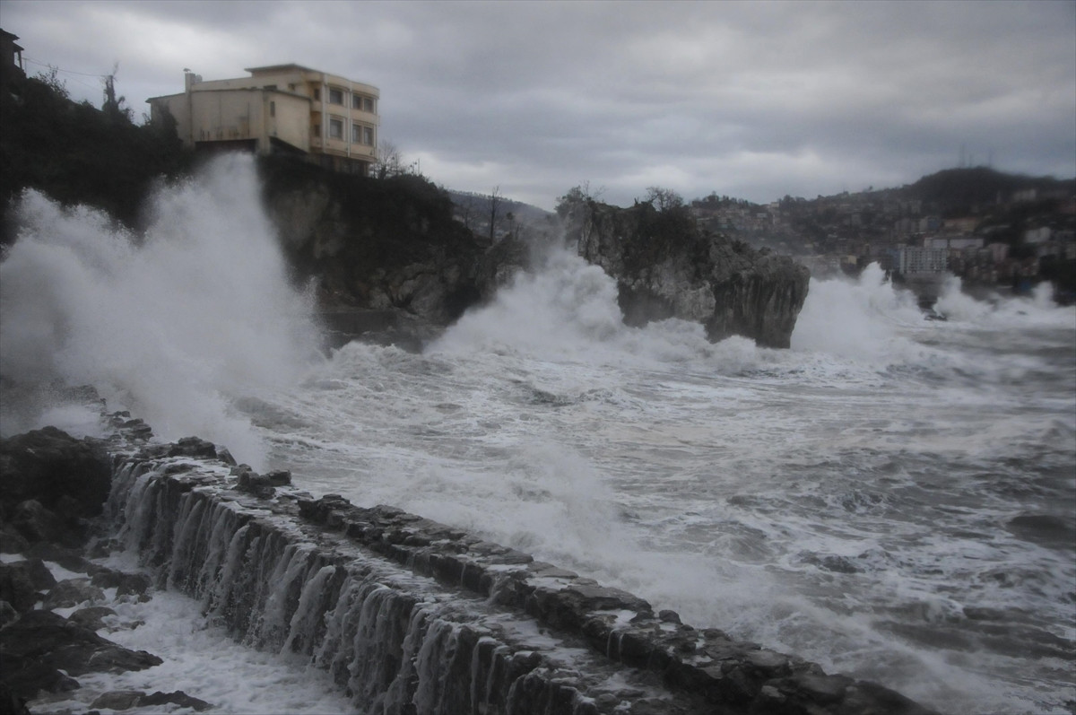 ZONGULDAK (AA) - Karadeniz'de geceden beri etkili olan fırtına nedeniyle yüksekliği 5 metreye ulaşan dalgalar, Zonguldak Limanı'ndaki mendireği aştı.