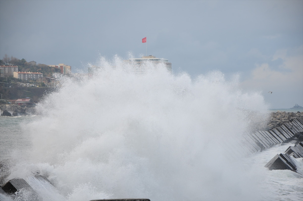 ZONGULDAK (AA) - Karadeniz'de etkili olan rüzgar nedeniyle yüksekliği 4 metreye ulaşan dalgalar, Zonguldak Limanı'ndaki mendireği aştı.
