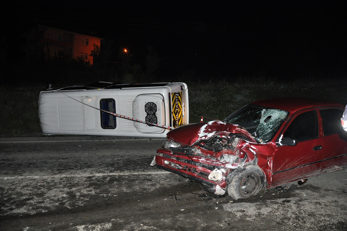 Alınan bilgiye göre, Ereğli ilçesindeki düğünden Çaylıoğlu Köyü'ne dönenleri taşıyan Sami Erarslan (26) idaresindeki 67 SA 859 plakalı minibüs, Ereğli - Devrek karayolu Aydınlar Köyü mevkisinde Hüseyin Açar'ın (56) kullandığı otomobil ile çarpıştı.