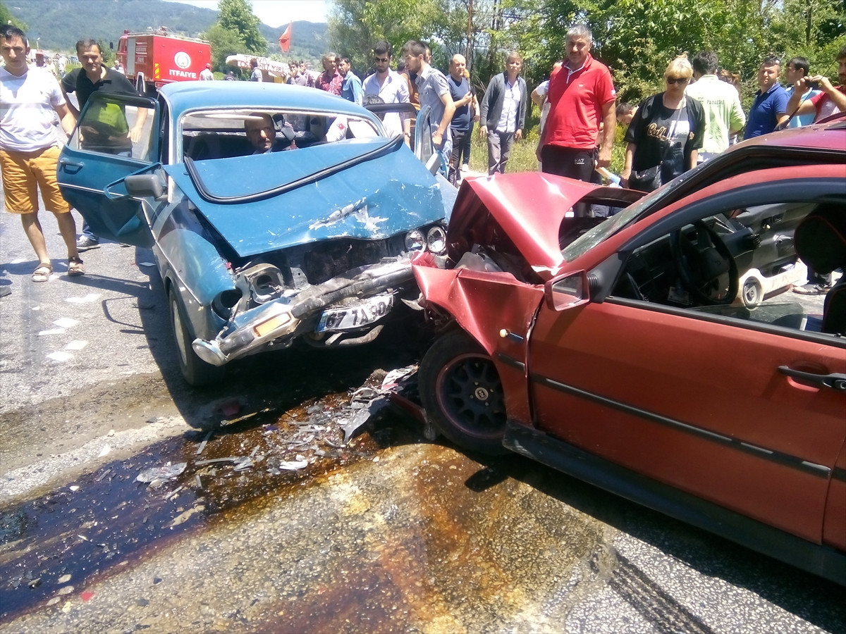 Alınan bilgiye göre, Zonguldak-Ereğli karayolunda İsmail Gökmen (39) idaresindeki 67 TA 904 plakalı otomobil, Ören mevkisinde karşı yönden gelen Özcan Karakuş'un kullandığı 67 FC 598 plakalı otomobille çarpıştı.