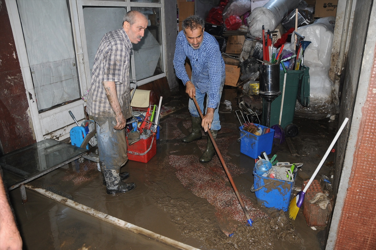 ZONGULDAK (AA) - Zonguldak'ta etkili olan şiddetli yağış nedeniyle su basan iş yerlerinde temizlik ve hasar tespit çalışmalarına başlandı.