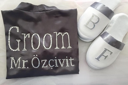 Ünlü çift için üzerinde isimlerinin yer aldığı gelin-damat sabahlığı ve Evcen’e özel nostajik gelin terliği ve ayakkabısı hazırlandı. Evcen’in nedimelerine jest yapmak istemesinin üzerine gelinin yakın dostları için de nedime sabahlığı ve terliği hazırlandı.